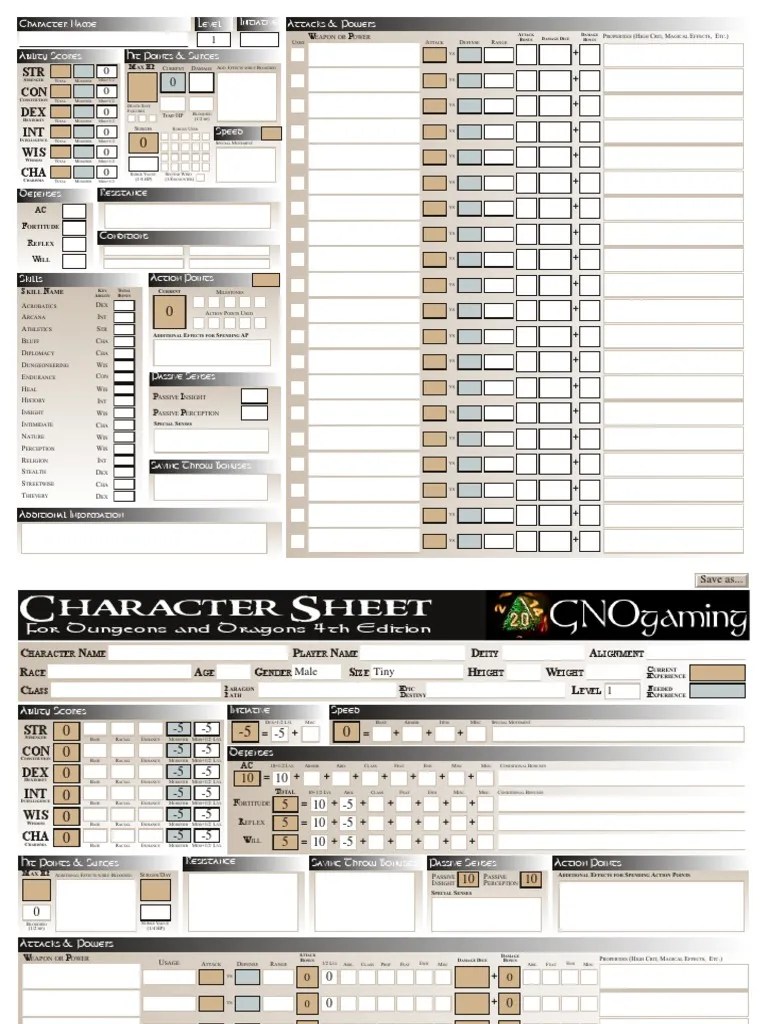 Editable D&D 4E Character Sheet Dungeons & Dragons Gary Gygax Games