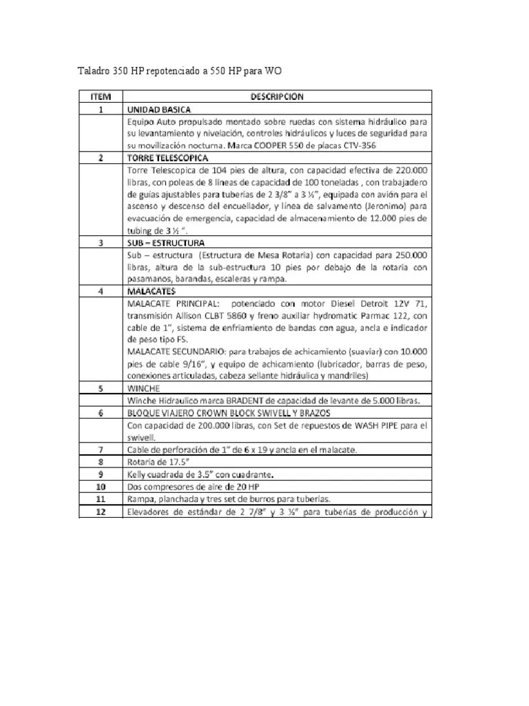 Taladro 350 HP Repotenciado A 550 HP para WO PDF