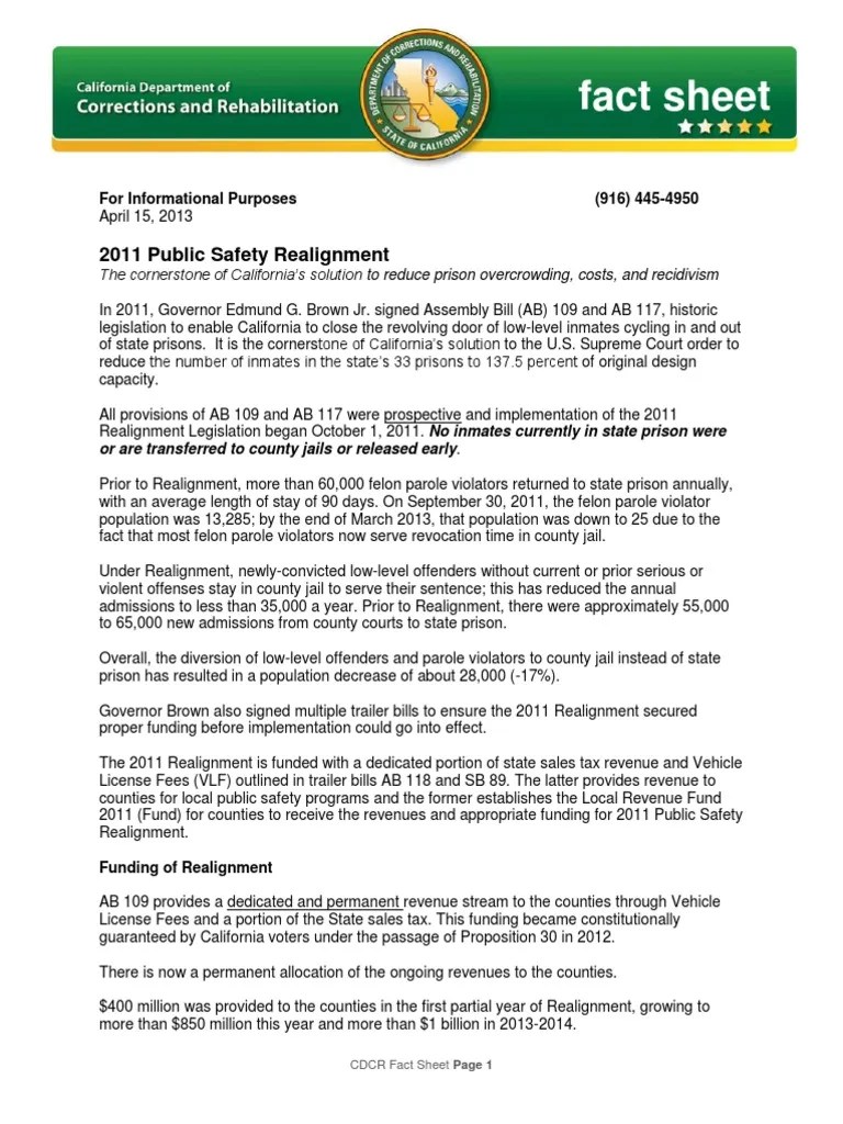 Ab 109 Fact Sheet - Web ab 109 provides a dedicated and permanent revenue stream to the counties through vehicle license fees and a portion of the. Web funding of realignment ab 109 provides a dedicated and permanent revenue stream to the counties through vehicle license fees.