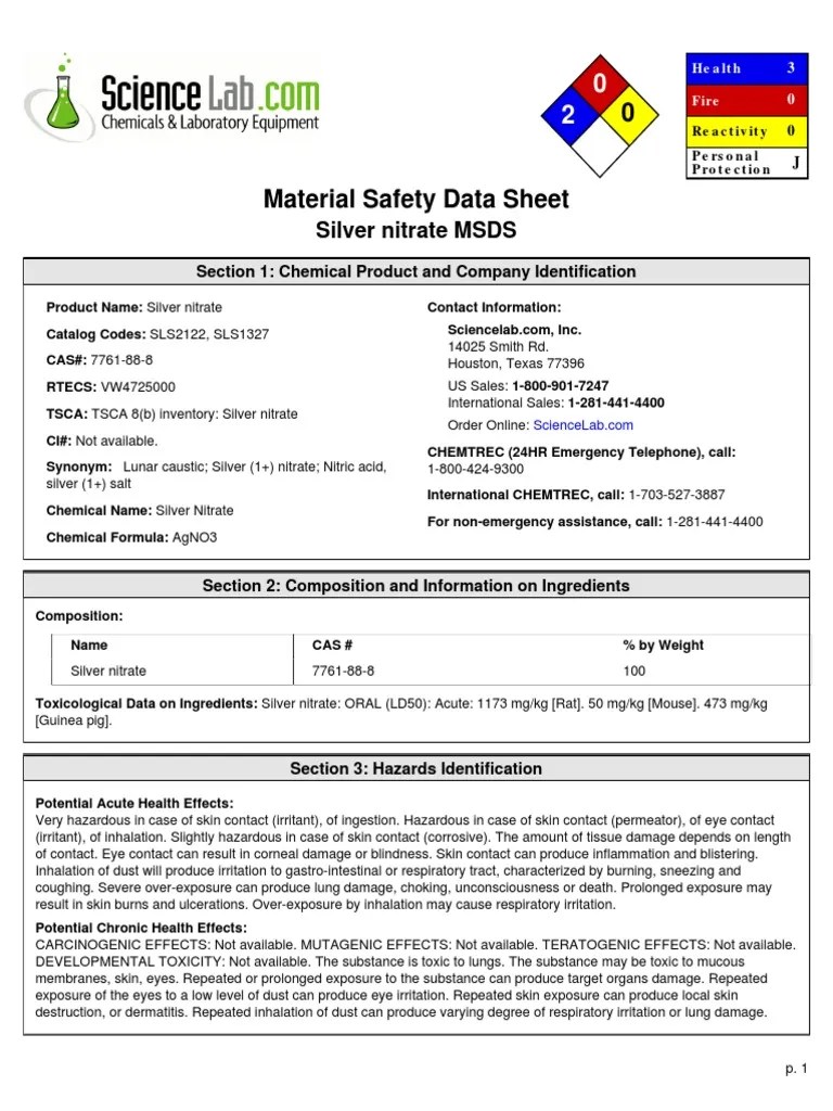 Silver nitrate product number : No component of this product present at levels greater than or equal to 0.1% is identified as a known or. Web wear appropriate protective eyeglasses or chemical safety goggles as described by osha's eye and face protection.