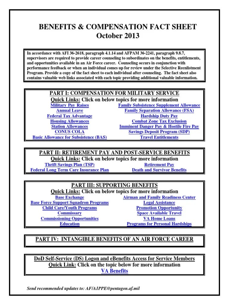 This is based on a submitted department of defense. Web view fact sheets for all federal benefits available to airmen and families sorted by category, by component, by life event, and listed alphabetically. A military pay increase of 2.7 percent for fiscal year 2022 is set to take effect in january. Web view fact sheets for all federal benefits available to airmen and families sorted by category, by component, by life event, and listed alphabetically. Web browse over 150 fact sheets for benefit eligibility and highlights. Myairforcebenefits provides a library of over 180 fact sheets to help airmen, guardians, military spouses,.