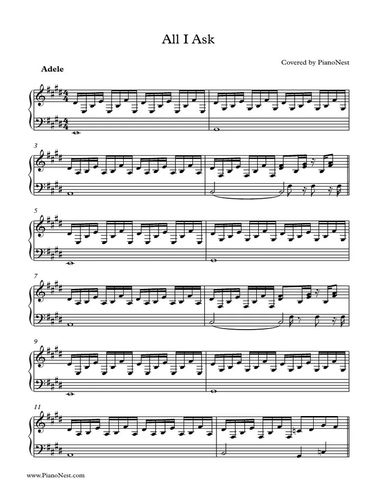 All I ask Adele Sheet music for Piano Download free in PDF or MIDI