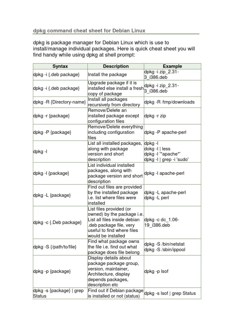 DPKG Command Cheat Sheet For Debian Linux Advanced Packaging Tool