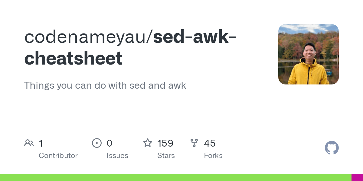 GitHub codenameyau/sedawkcheatsheet Things you can do with sed and awk