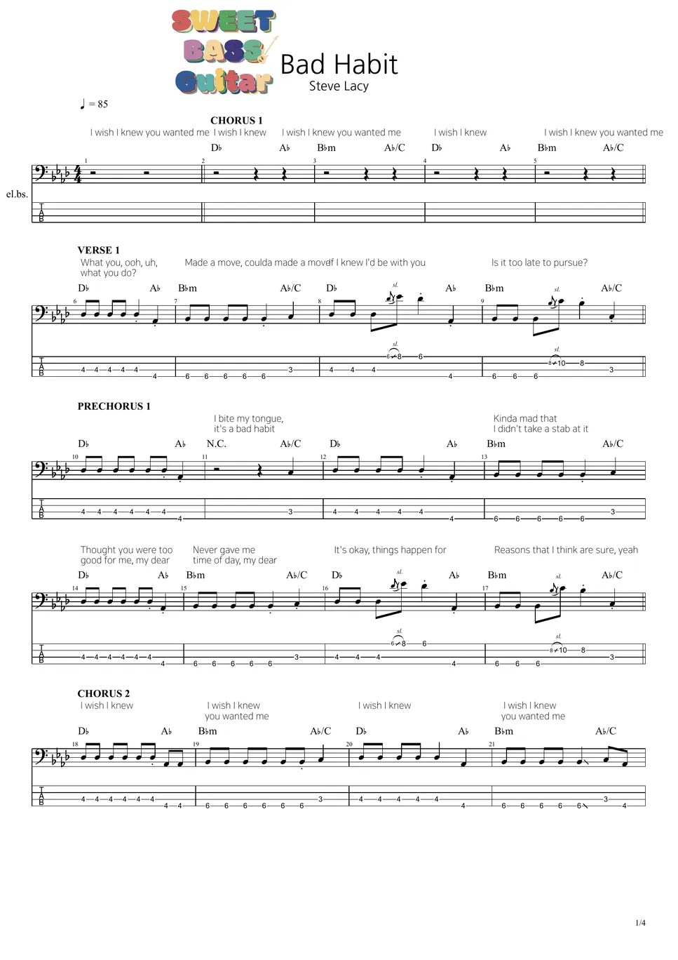 Steve Lacy Bad Habit 曲谱 by Sweet Bass