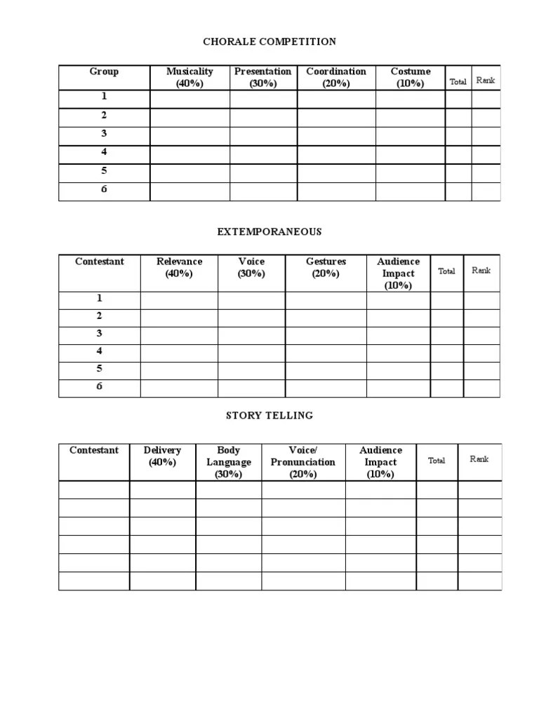 Judging Score Sheet Template