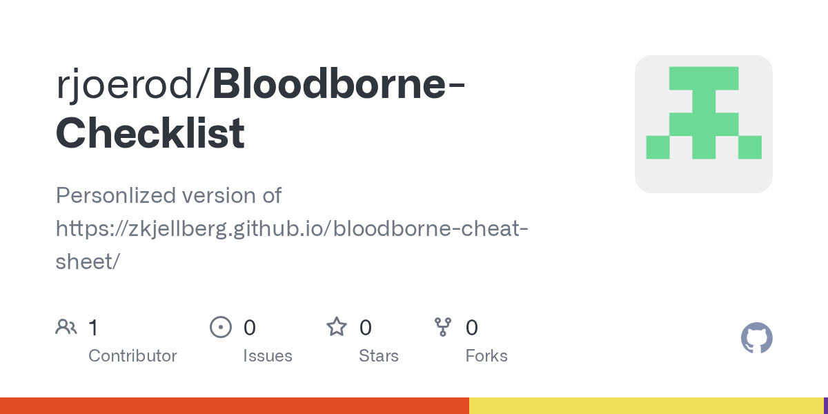 GitHub rjoerod/BloodborneChecklist Personlized version of https