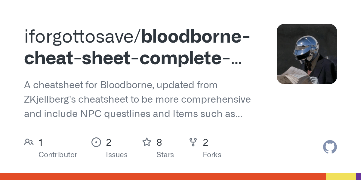 GitHub ZKjellberg/bloodbornecheatsheet Cheatsheet for Bloodborne