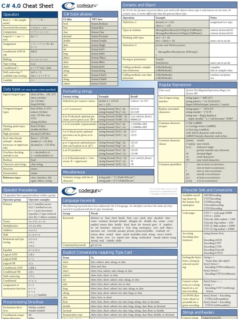 C Sharp Cheat Sheet - It is a quick and easy way to learn about the most. Web this cheat sheet is a valuable resource for anyone who wants to learn c#.