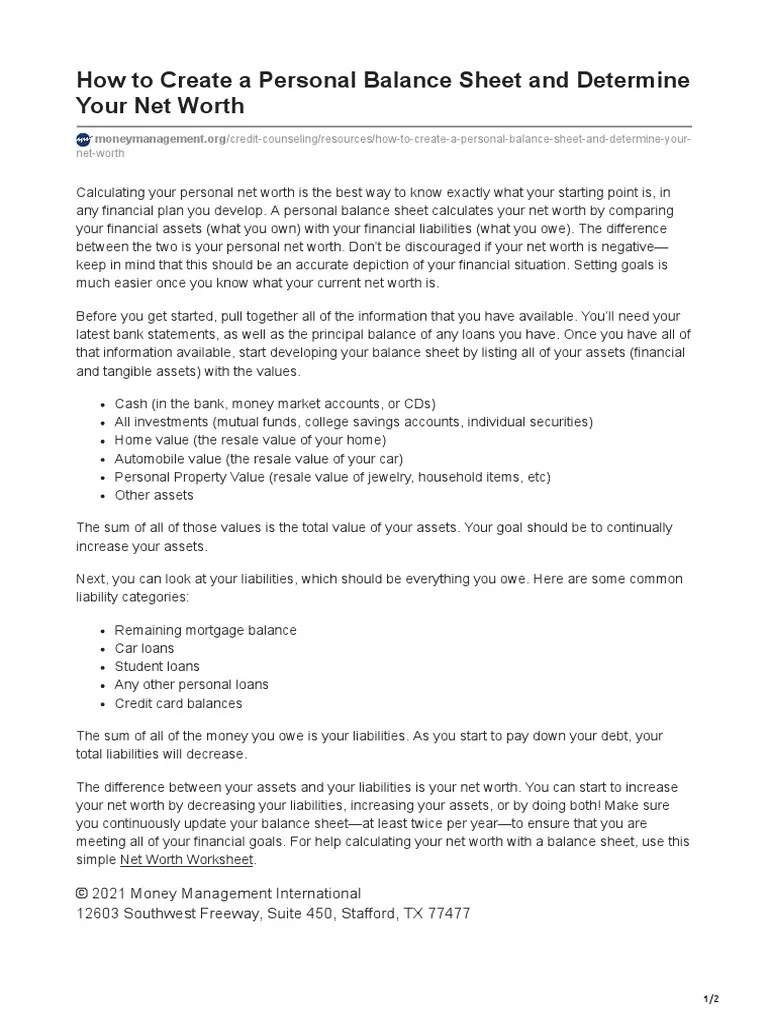 Carrie Is Creating A Personal Balance Sheet Education Insights
