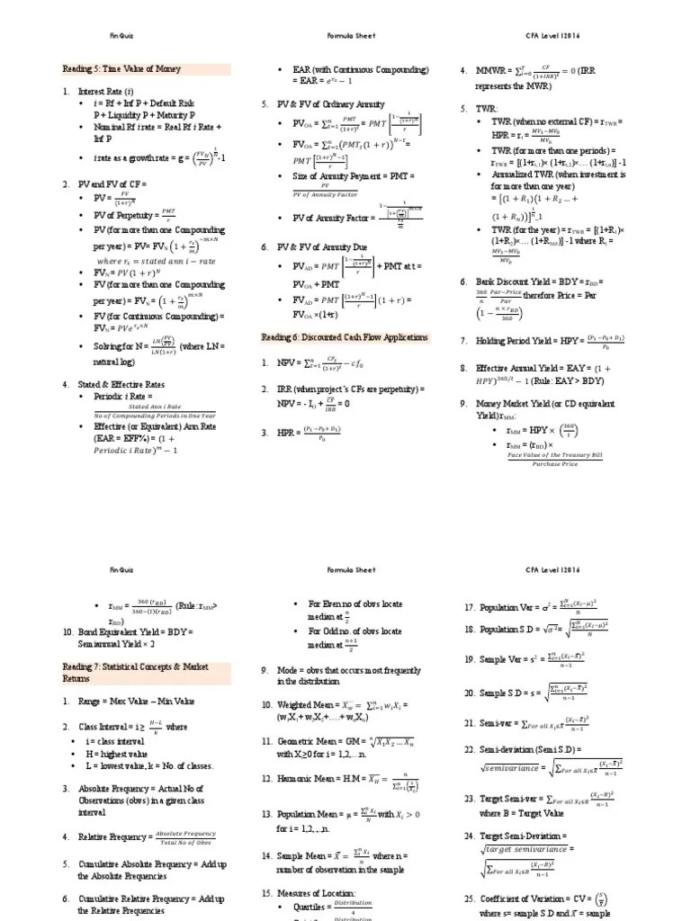 Ift Formula Sheet Cfa Level 1 Pdf 2021 Level I Fact Sheet Key Mobile