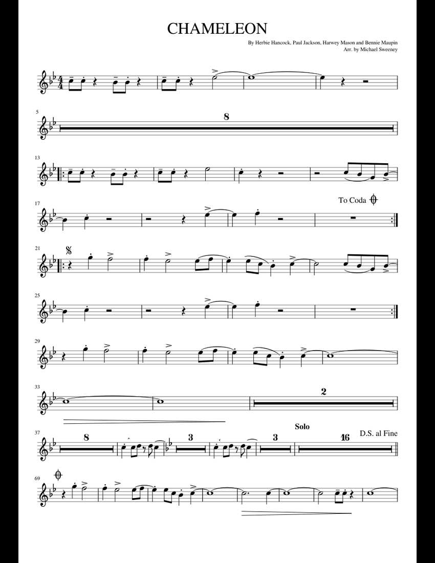 Jackson transcribed by ville v. Web free chameleon by herbie hancock sheet music | download pdf or print on musescore.com. (2009) µ (play last time) play 3 times drums enter.