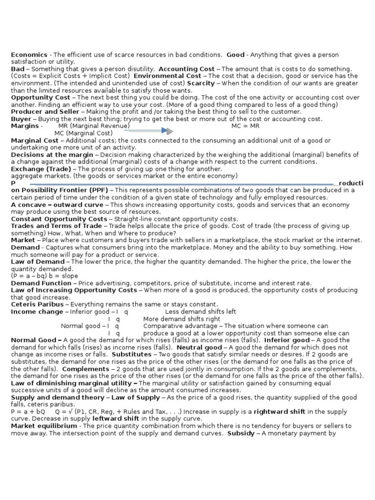 Economics Cheat Sheet Demand Supply And Demand