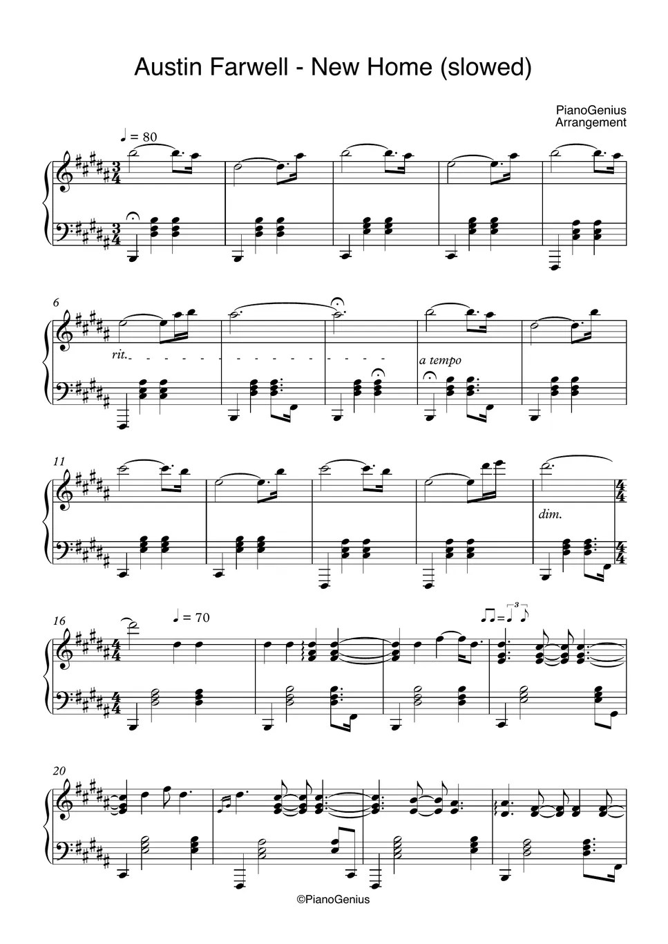 Austin Farwell New Home (slowed) Sheets by PianoGenius