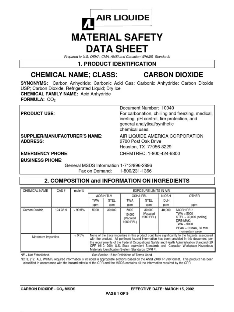 Co2 Material Safety Data Sheet