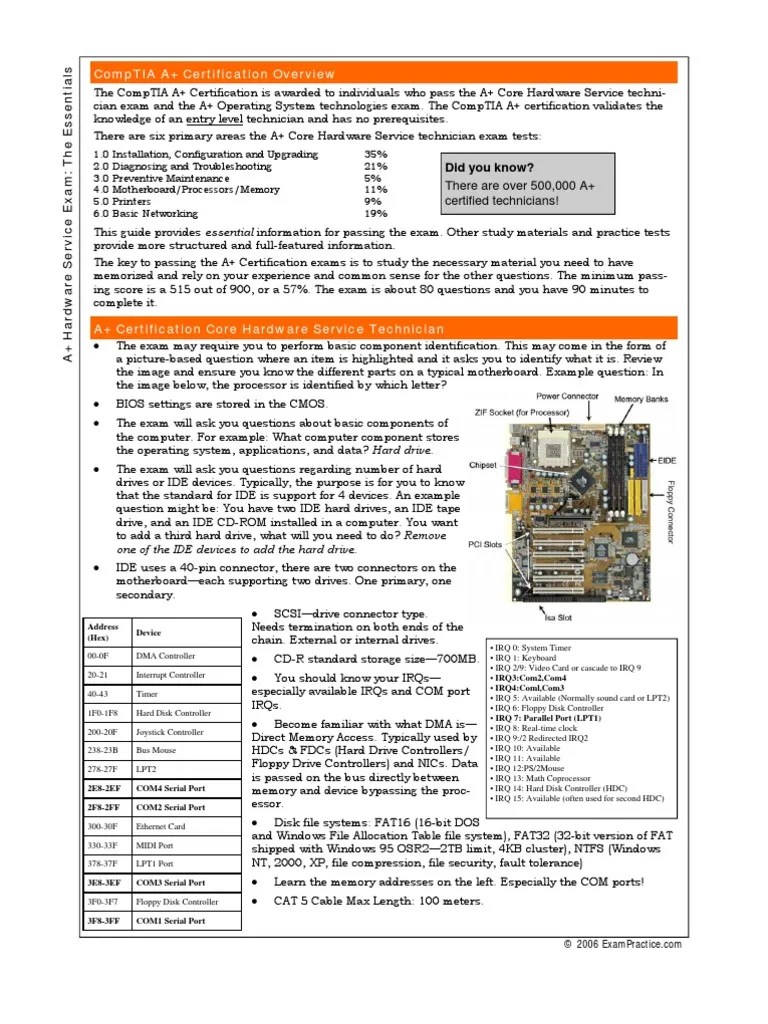Web Omptia A+ Master Heat Sheet How To Prepare For Questions About Hardware On The Omptia A+ Ore Series Test General.