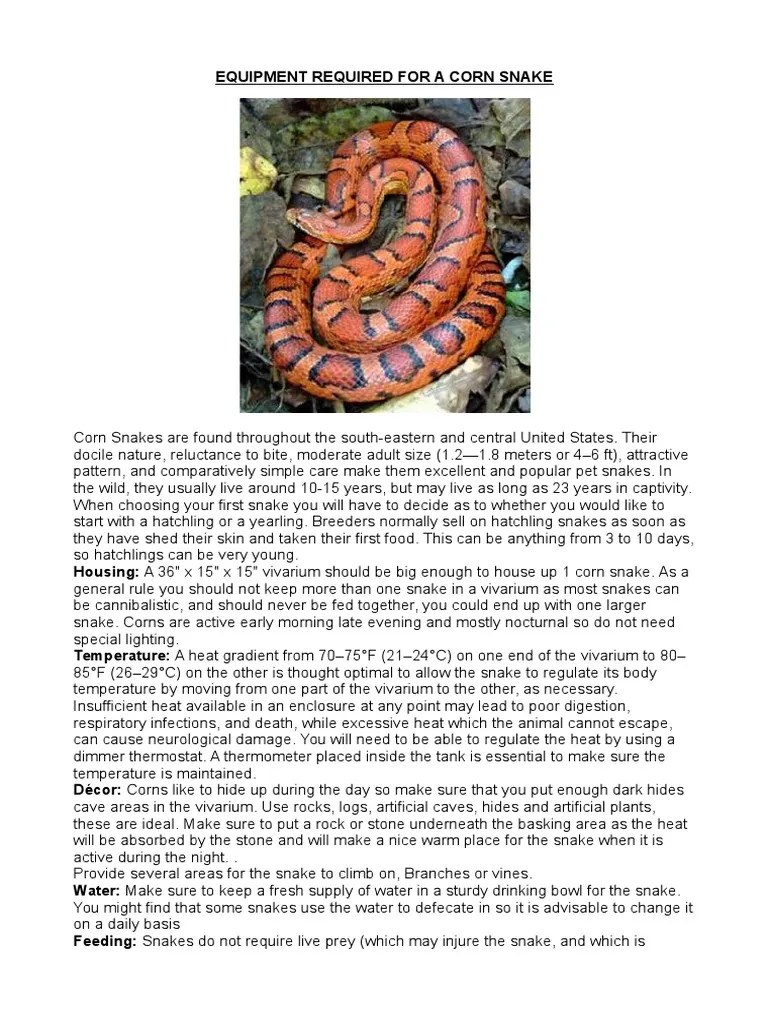 Care Sheet Corn Snake Nature Psychology & Cognitive Science
