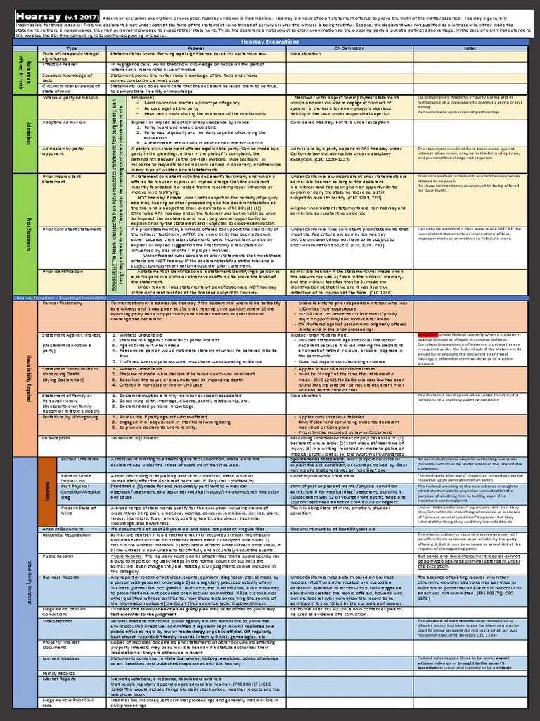 California Bar Exam Evidence Hearsay Cheat Sheet Hearsay Witness