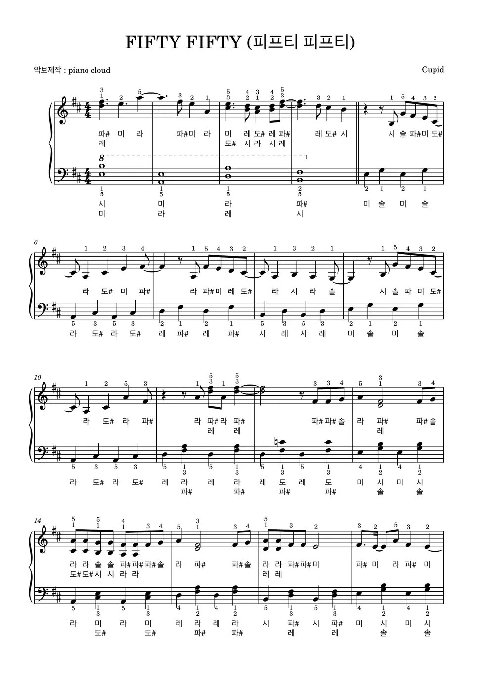 Cupid FIFTY FIFTY(피프티 피프티) (계이름,손가락번호) Sheets by 피아노클라우드(piano cloud)