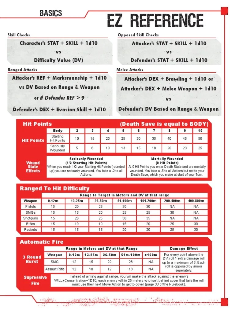 Cyberpunk Red Cheat Sheet - Web i created a google doc for my players since it'll be our first time playing. Web my cyberpunk red ez ref sheets. Web gm cheat sheet : So i am new to cyberpunk, have picked up cyberpunk red and loving the book and kinda dying to run it. Newer gm here, just thought i'd share these ref sheets that might help some people. I am new gm for cyberpunk. It (hopefully) condenses everything a player should need during a play session, so it. Web cyberpunk red resources! Web explore downloadable content, character sheets, adventures, and more for cyberpunk red, the witcher trpg, castle falkenstein, and other tabletop rpgs from r.