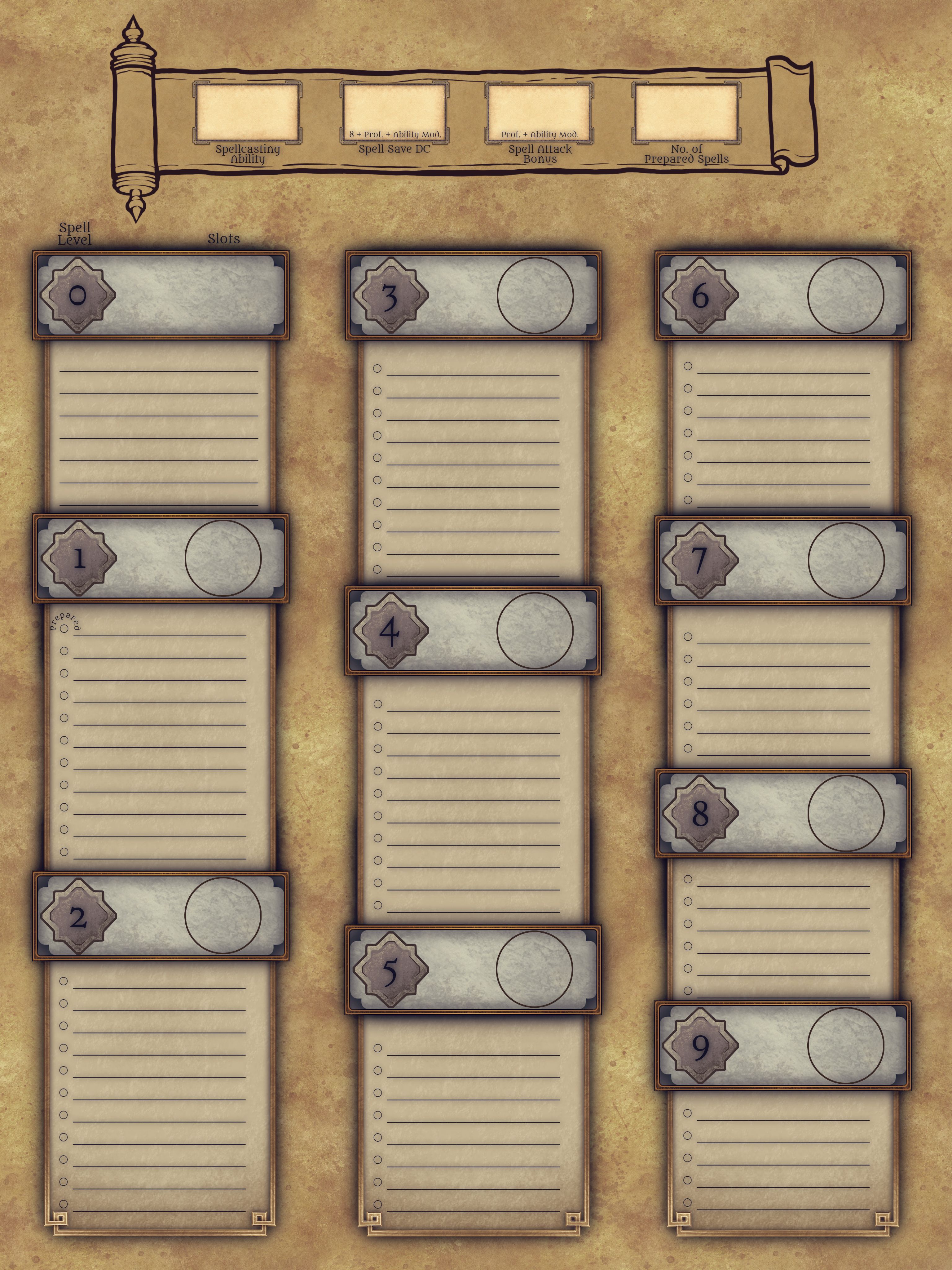 D&D 5E Spell Sheet - Web dungeons and dragons (d&d) fifth edition (5e) spells. Bard cleric druid paladin ranger sorcerer warlock wizard. Cantrip 1st 2nd 3rd 4th 5th 6th 7th. A comprehensive list of all official spells for fifth edition.