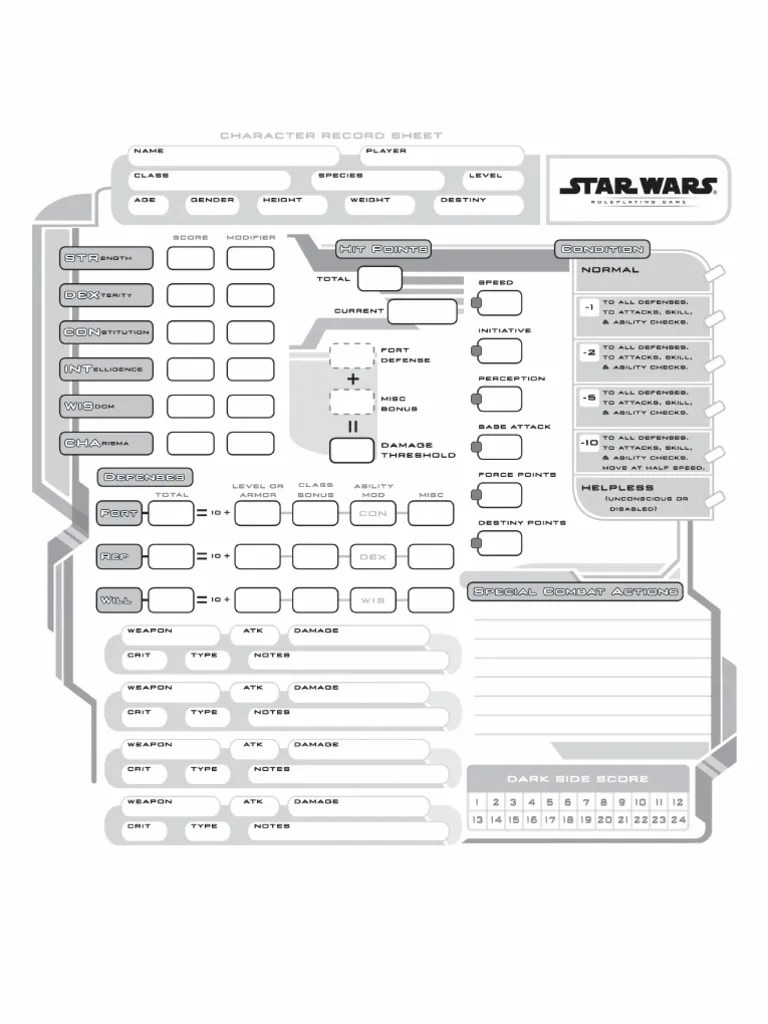 Star wars d20 fillable Character sheet