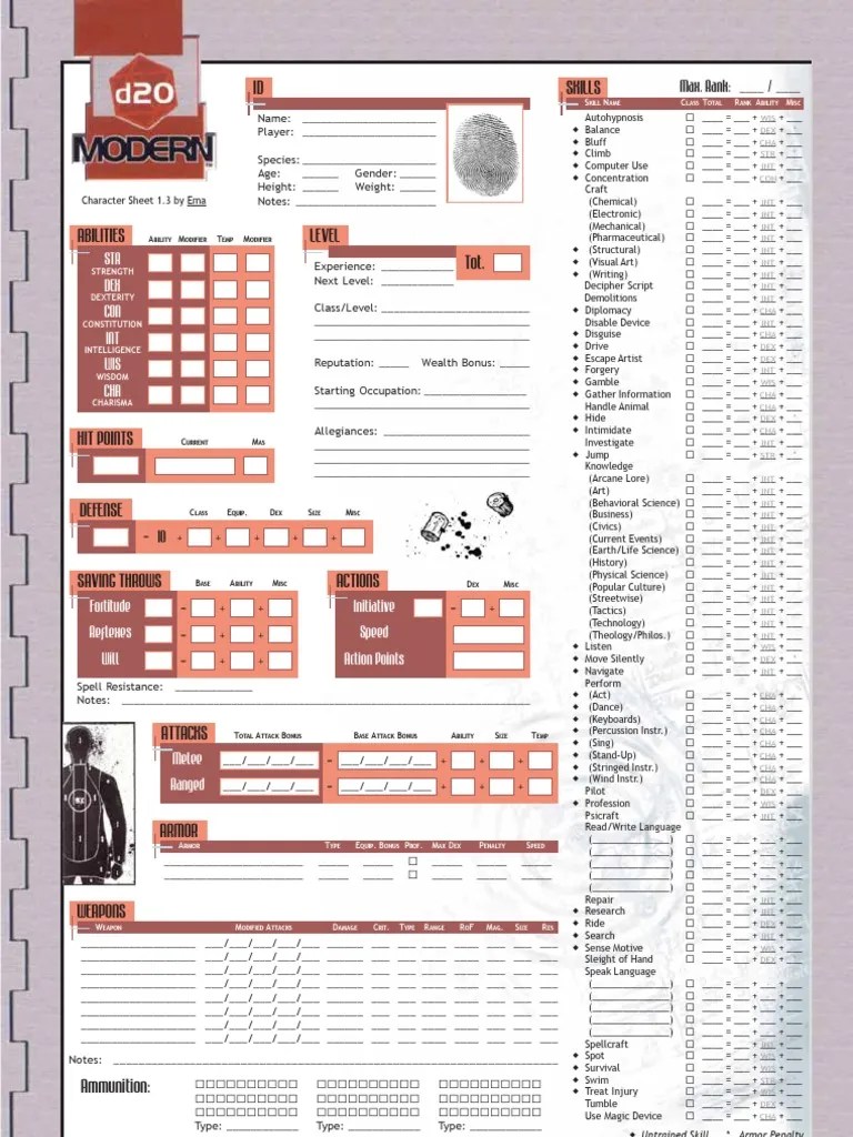 Character Sheet D20 Modern Wiki Fandom