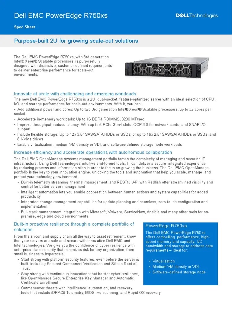 Dellemc Poweredge r750xs Spec Sheet PDF Solid State Drive Scalability