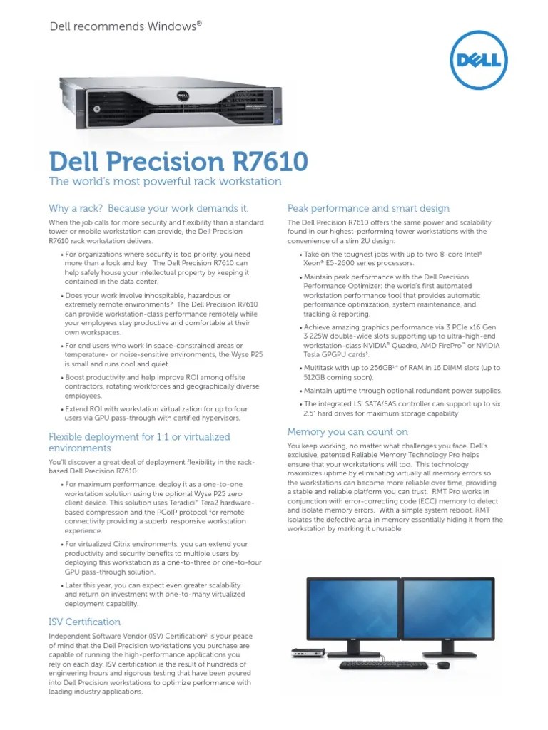 Dell Precision R7610 Spec Sheet Computer Engineering Computer