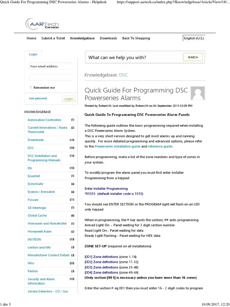Quick Guide for Programming DSC Powerseries Alarms Helpdesk