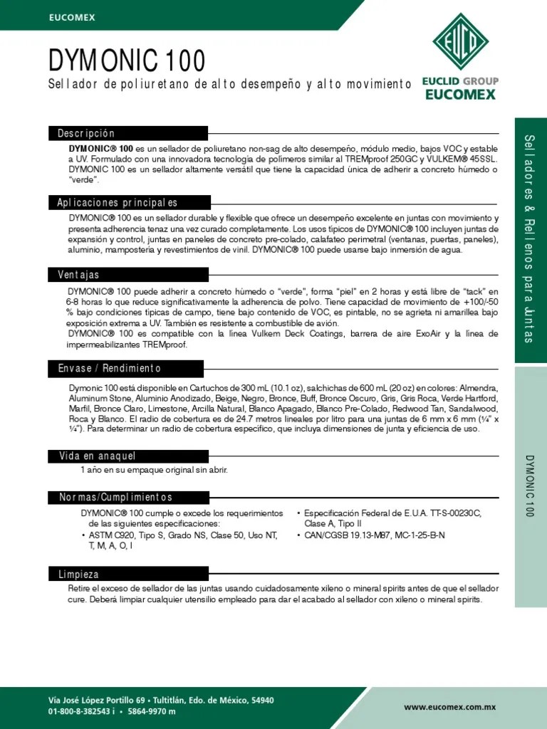 Formulated with an innovative polymer technology, dymonic 100 is a highly. Formulated with an innovative polymer technology, dymonic® 100 is. Formulated with an innovative polymer technology, dymonic® 100 is. Basic uses dymonic 100 is a durable, flexible sealant that. Formulated with an innovative polymer technology similar to tremproof 250gc and vulkem 45ssl,.