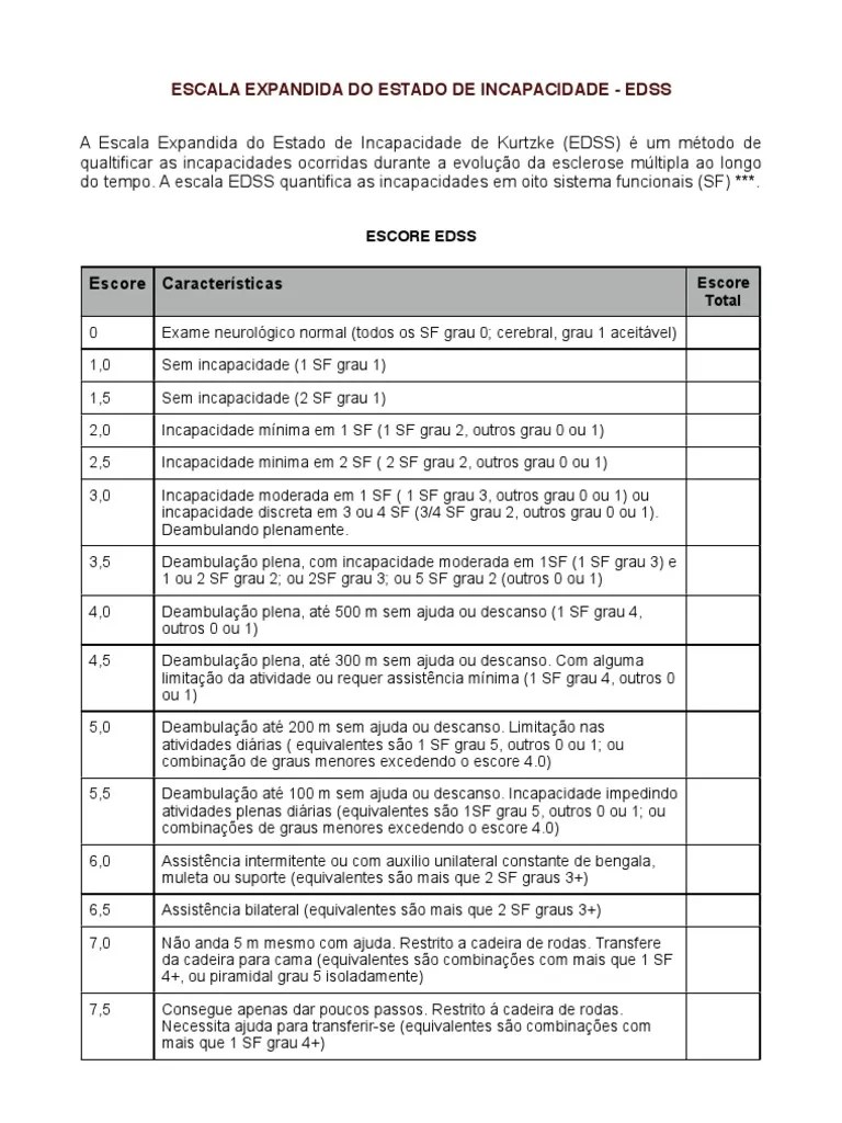 EDSSScore (Expanded Disability Status Scale) Neurologie Afradi