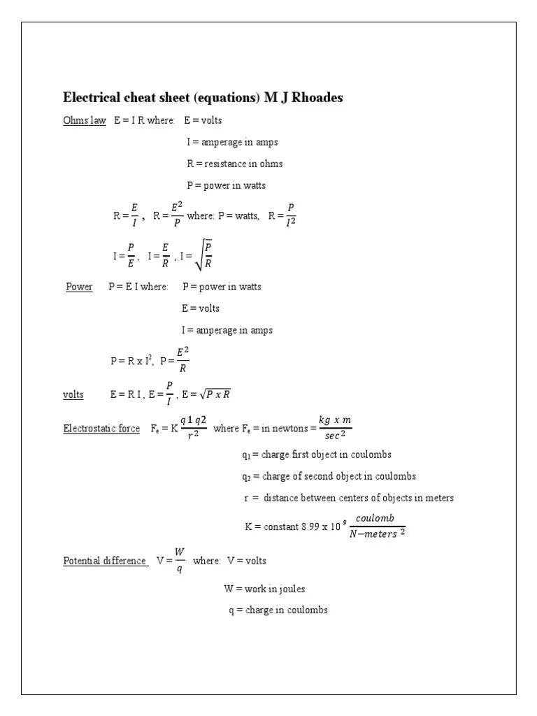 Electrical Cheat Sheet - 555 timer as an astable multivibrator ; Web 14 cheat sheets tagged with electrical. Web displaying electrical signals on an oscilloscope ; Make, regular, scrabble, screen, electronics and 97 more. When beginning to explore the world of electricity and electronics, it is vital to start by understanding the basics of voltage, current, and resistance. What are conductors, what are insulators? How do these three concepts relate to each other? Everything you will need to enjoy a trip away from home. 10 memorable names in electronics ; Web electricity 3 · characteristics 3 · current 4 · voltage 5 · resistance 6 · review 1 9 · ohm’s law 10 · dc circuits 10 · series circuits 11 · parallel circuits 13 · review 2 17 ·.