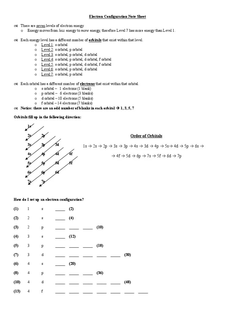 Electron Configuration Study Sheet Atomic Orbital Electron