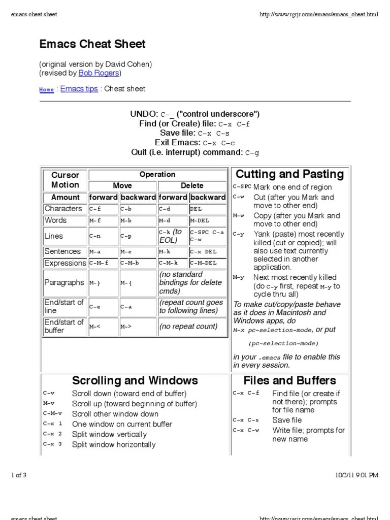 Essential Emacs Cheat Sheet by shawnr Download free from Cheatography
