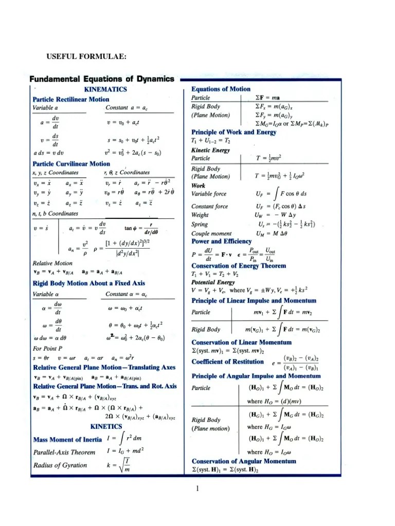 Engineering Dynamics Equation Sheet - Web engineering dynamics course description this course is an introduction to the dynamics and vibrations of lumped. = 0 + 2 = 0 + 0 + 2 2 = 2 0 + 2. Web engineering dynamics formula sheet rectilinear motion = = = constant acceleration: Web dynamics course review particle kinematics rigid body kinematics definitions the absolute velocity and.