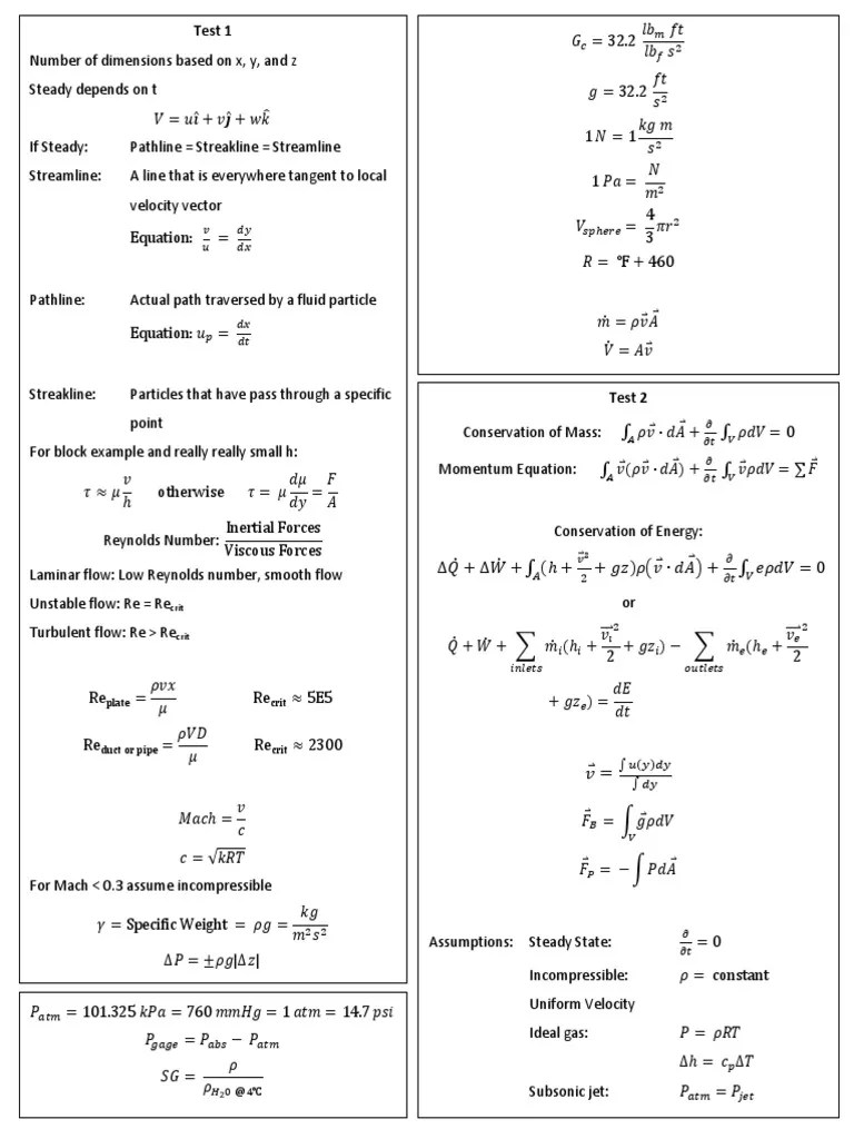 SOLUTION Fluid mechanics 1 formula sheet Studypool
