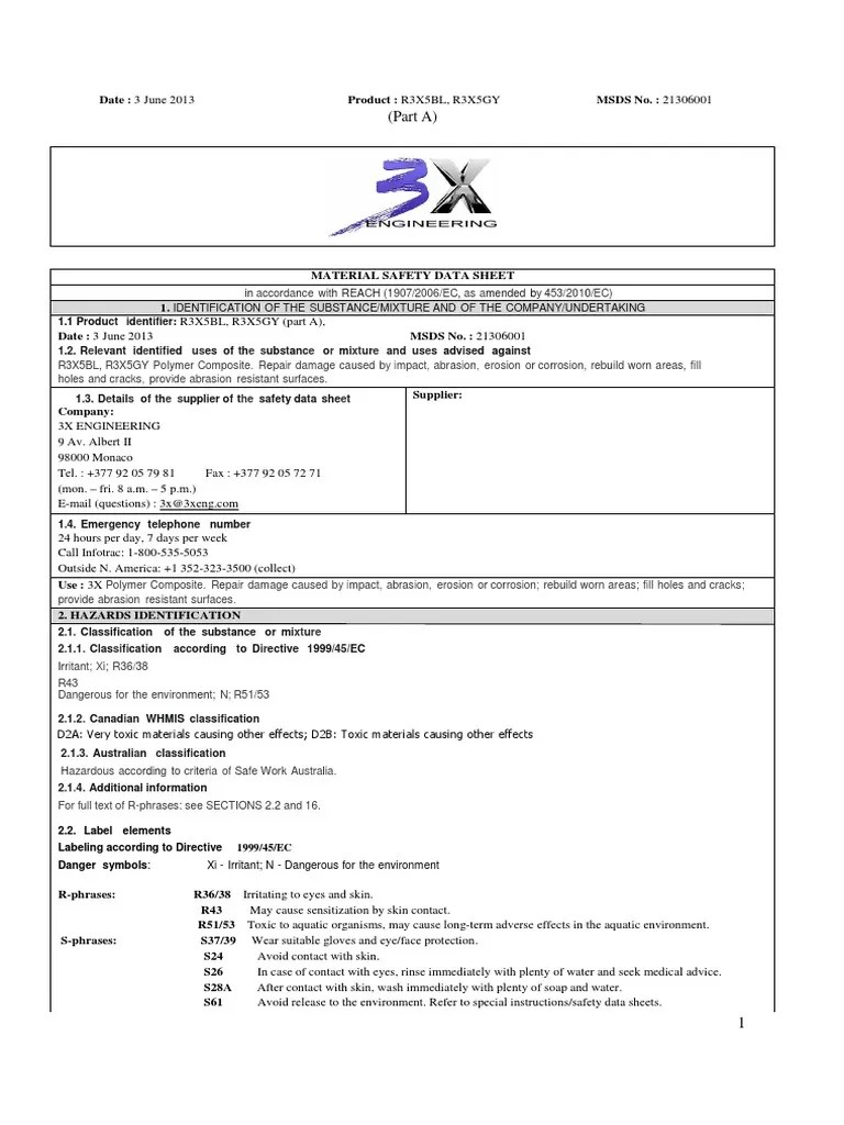 1. Resin R3X5_material Safety Data Sheet_Part A Dangerous Goods Safety