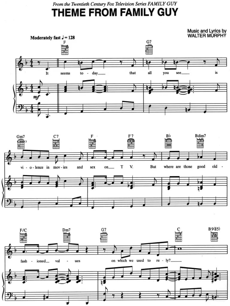 Family guy free sheet music by Walter Murphy Pianoshelf