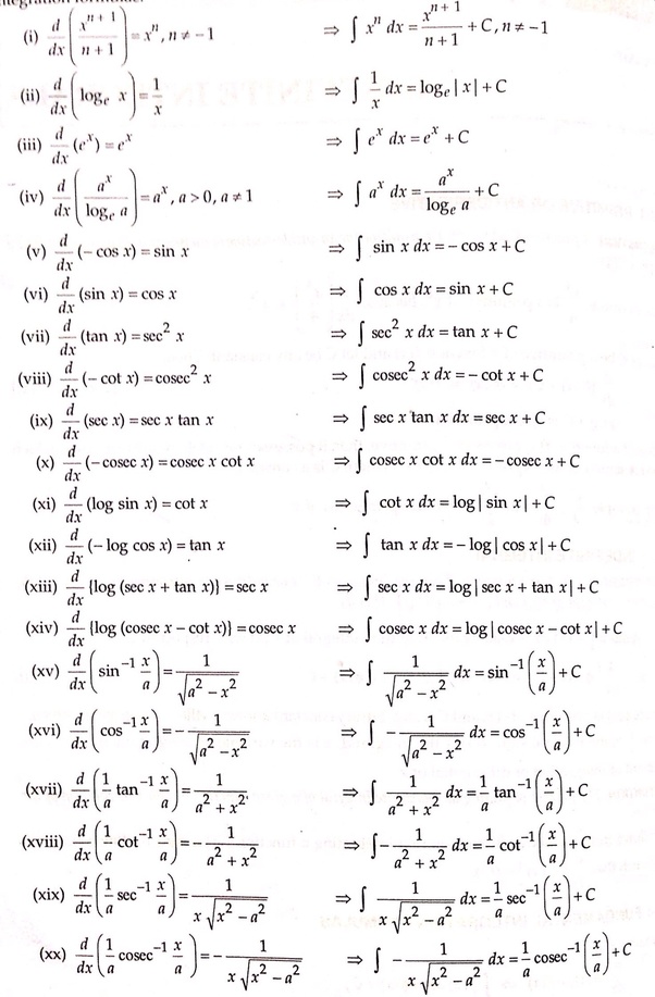 Maths Formula Integration Formula for HSC Board HSC Higher