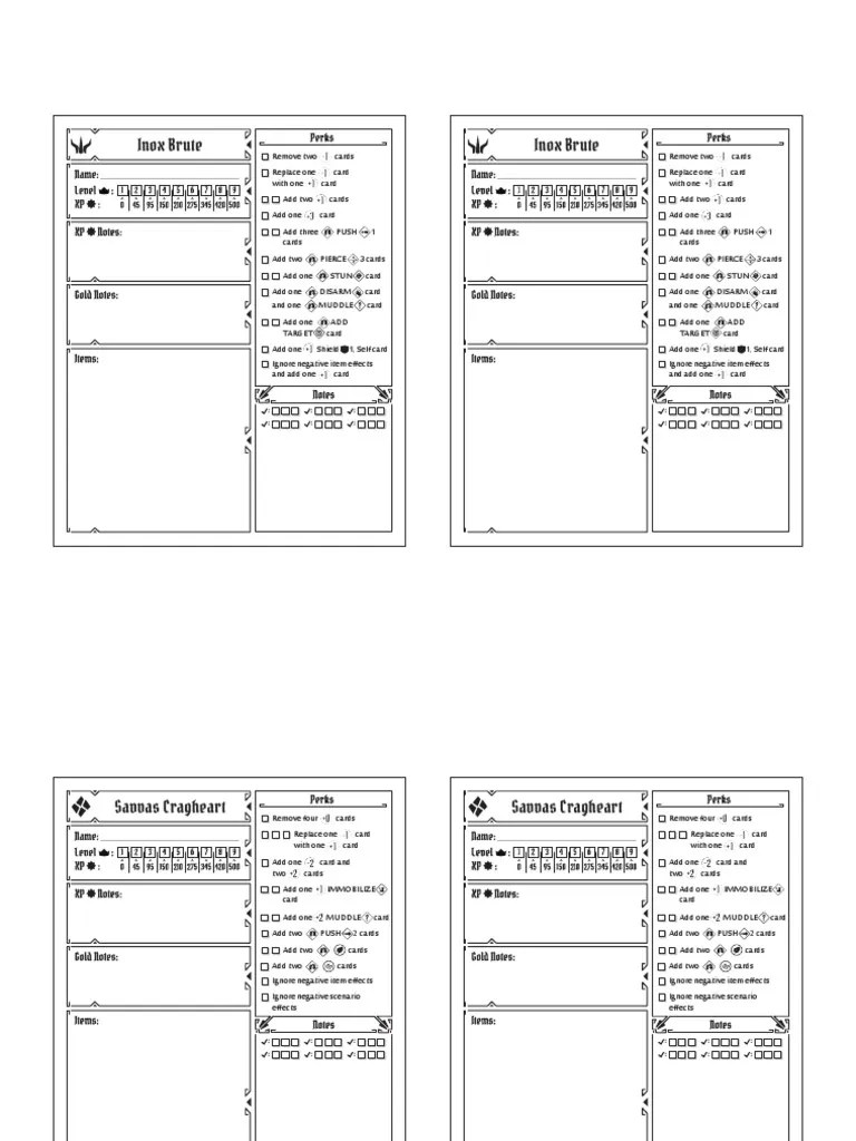 Gloomhaven Character Sheets Starting Classes Gaming Leisure