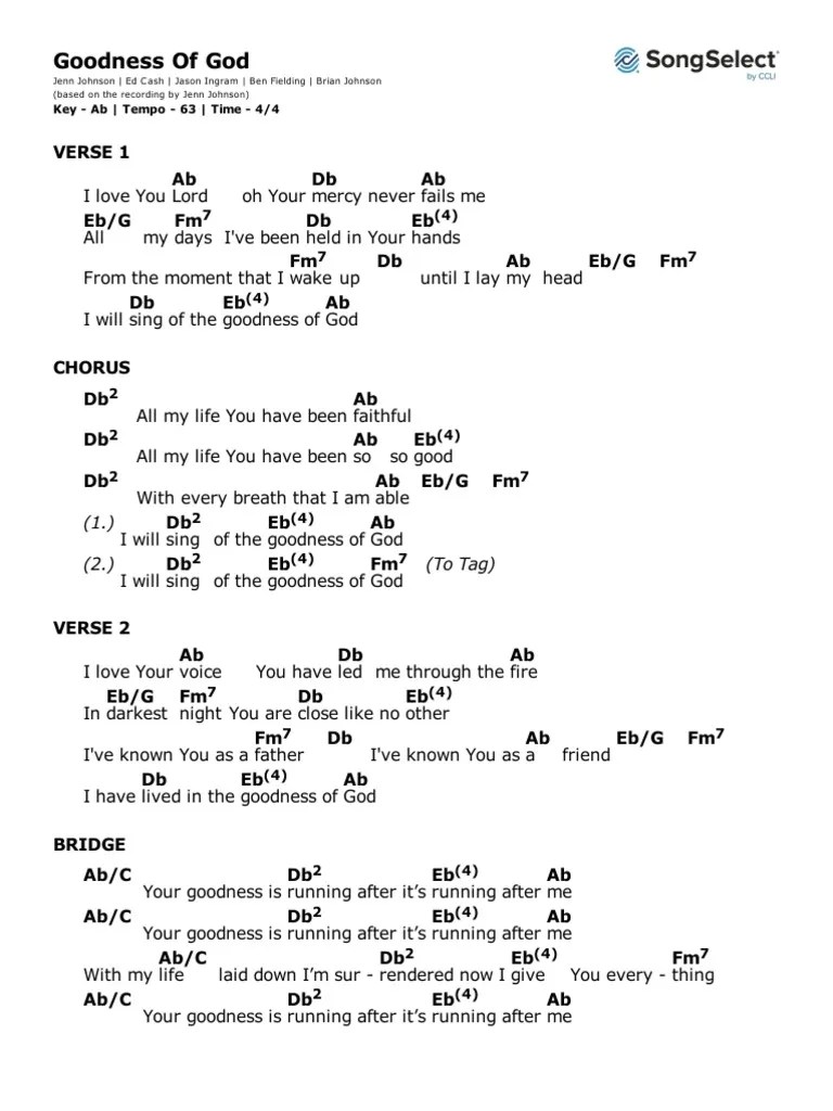 Goodness Of God Chord Sheet - Web free goodness of god by bethel music sheet music | download pdf or print on musescore.com.