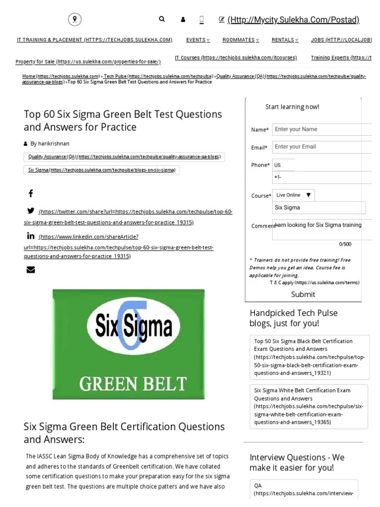 Sample Green Belt Examination Questions PDF Six Sigma Standard