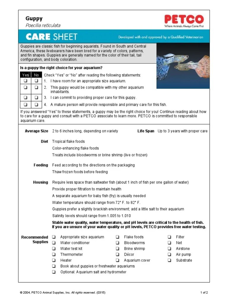 Guppy Care Sheet - June 11, 2021 124.0k views guppy fish are an incredibly popular freshwater fish in the aquarium scene. Web 5 guppy care sheet quick points.