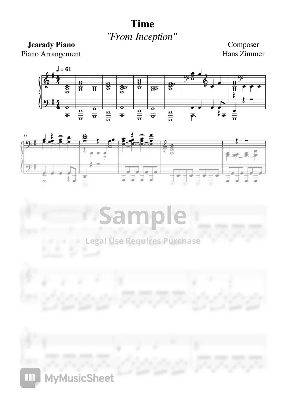 Hans Zimmer Time Piano Sheet Music Inception Jearady Piano Sheets