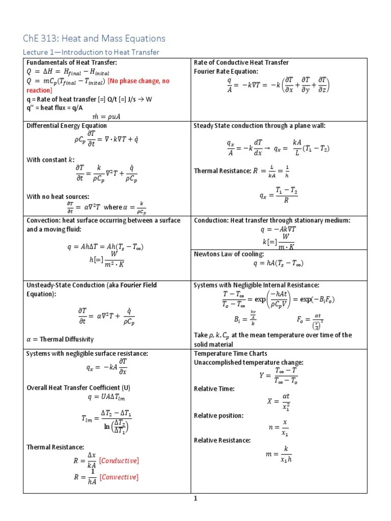 Heat transfer formula sheet Gases Branches Of Thermodynamics