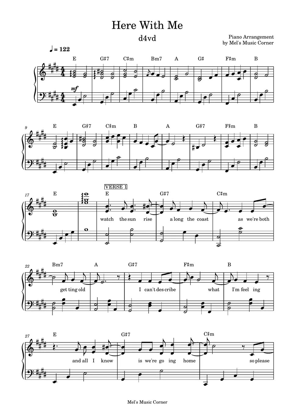 Here With Me Piano Sheet Music - Chvrches for piano, guitar, violin and voice. Web here with me composition by d4vd sheet music main info scores 9 filters difficulty level available only for piano scores. Web find 14 arrangements of \here with me\ by marshmello feat.