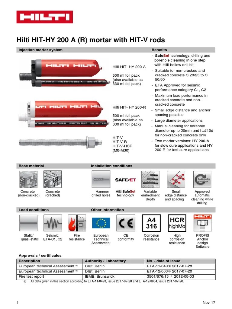 Buy Hilti HY 200 R With Rebar, HITZ, HITV, HIS Rods Chemical Anchor