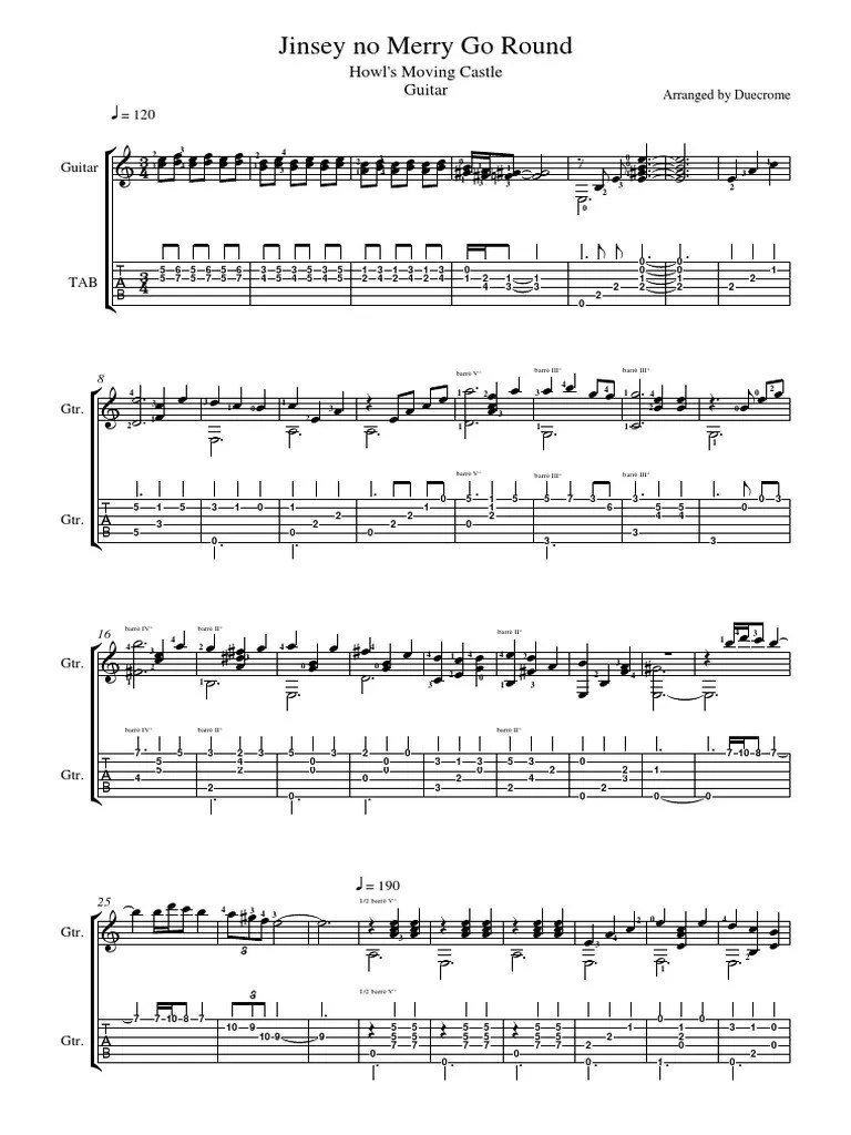 Howl's Moving Castle Guitar Tab/Sheet Music Musical Compositions