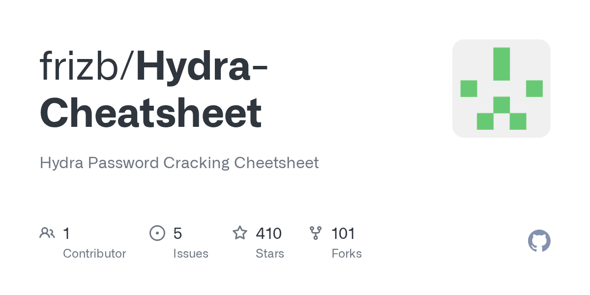 HydraCheatsheet/HydraPasswordCrackingCheatsheet.pdf at master